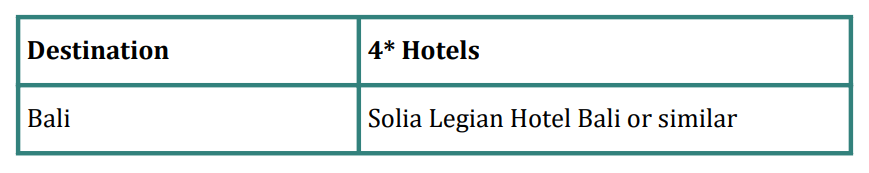 • All rates are subject to change due to availability, peak seasons, public holidays, special events, or currency fluctuations.