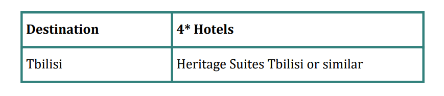 - 4 nights accommodation in Tbilisi with daily breakfast